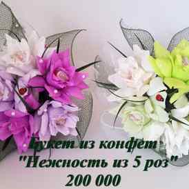 Наша компания занимается изготовлением эксклюзивных подарков - сладкими букетами из конфет. Букет из конфет – это яркая и оригинальная композиция, состоящая из конфет , цветов и необычных аксессуаров. Букеты бывают разные: официальные, юбилейные, свадебные, праздничные. Вы собираетесь идти на праздник и не знаете что подарить? А может совсем рядом Новый год?!, как удивить? Самым необычным и вкусным подарком станет Букет из Конфет!